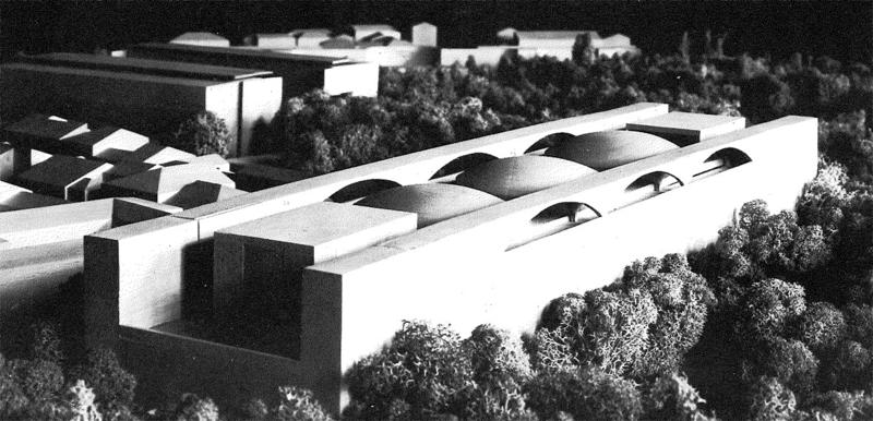 ヴェネツィアには3人の国際的建築家のプロジェクトがある。ル・コルビュジエの病院計画(Fig.26)、フランク・ロイド・ライトのマジエーリ記念館の計画(Fig.27)そしてルイス・カーンのビエンナーレ会議場計画(Fig.28)。が、しかしどれも実現しないまま今日に至っている。これには諸般の事情がそれぞれに絡むものの、パラディオにおいてすらリアルト橋の計画案がそのローマ風古典主義ゆえに支持を得られなかったように、これらの計画もヴェネツィアの伝統文化がそれらの建設を許容しなかったと言えなくはない。