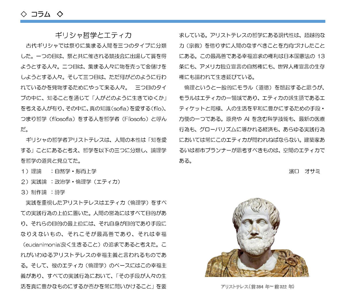 この論争のさなかに、私はマンジャロッティにどう思うか質問しました。「彼らは形態上の問題だけにとらわれているが、建築の評価はそれだけではない。建築に対するエティカの視点が欠けている」と答えました。エティカの日本語訳は倫理です。われわれは普通、倫理と聞くとモラルのことを思い浮かべます。すると、先の言葉の意味がよく分かりません。このことを理解する過程で、マンジャロッティの思想のベースにはギリシャ哲学があり、その主要な一つであるエティカの背景にはアリストテレスの「幸福主義」があります。「幸福主義」とは、幸福の追求こそが最高の善との考えです。そして、ギリシャ哲学の実践論の中に政治学と共にエティカ(倫理学)があります。それは「人々がより豊かな生活をするための知恵や方法を学び探求する学問」でした。それはまた、「その実践が人々の生活をより豊かなものにするか否かを常に問うこと」でした。つまり、マンジャロッティが言いたかったのは「モダニズムが実践したより豊かな生活に向けた幾多の試みを評価せず、形態的な問題のみを主張するポストモダニズムはエティカにおける貢献は何も無い」という批判でした。いづれにしてもこのモダニズム対ポストモダニズムの大論争は今からおよそ40年前のことでありますが、今日のパラダイム転換の起点になるできごとであり、とりわけ都市計画への影響は大きいものでした。